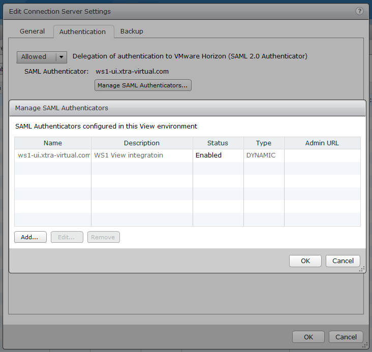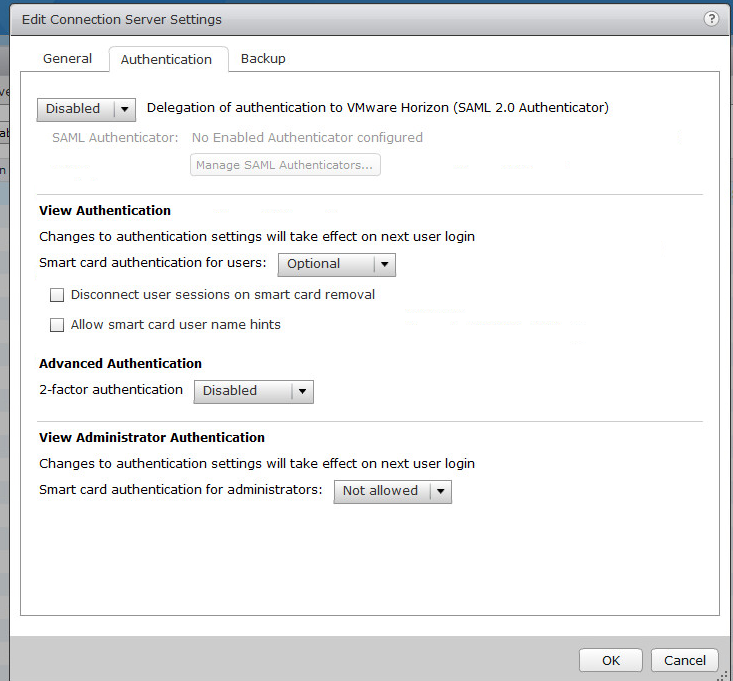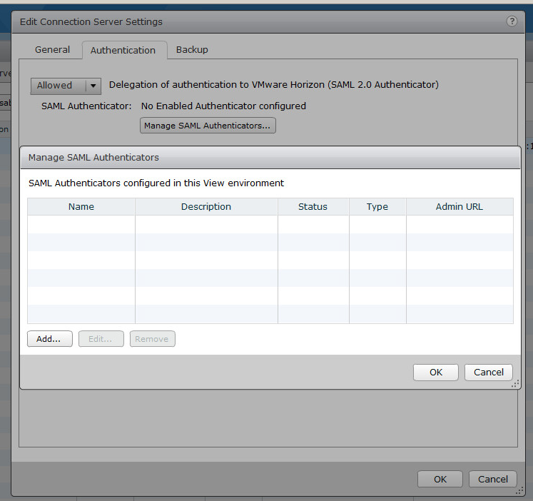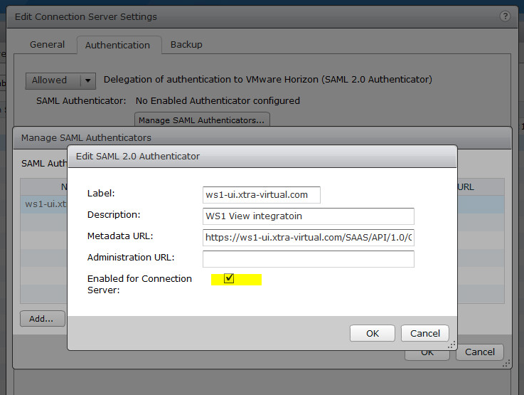 Click Ok and one more time Ok to confirm settings. This is how you will enable SAML Authentication on View connection server end.
