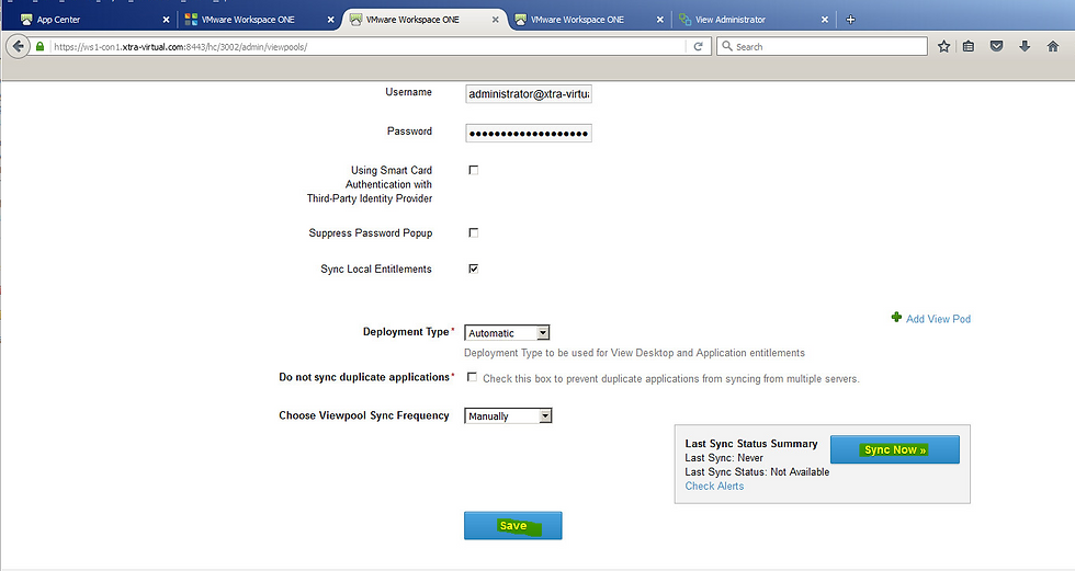 Scroll down and click save to save all configurations. and finally you can click Sync Now option to sync view pools into Workspace One.